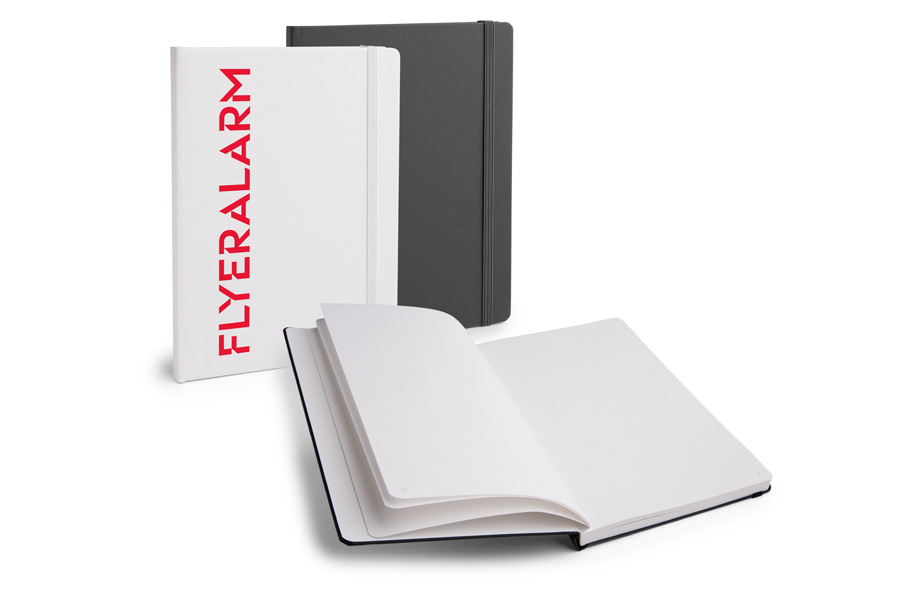 Format: 14,3 x 20,9 cm, Veredelungsbereich: 11,3 x 17,9 cm (auf der Vorderseite, Blind- oder Farbprägung), Umschlag: Hardcover mit fester Buchdecke und abgerundeten Ecken, Innenteil: 160 Notizseiten aus 90 g/m² Premiumpapier Munken Polar, punktiert mit Seitenzahlen, inkl. Gummiband und Lesezeichenband