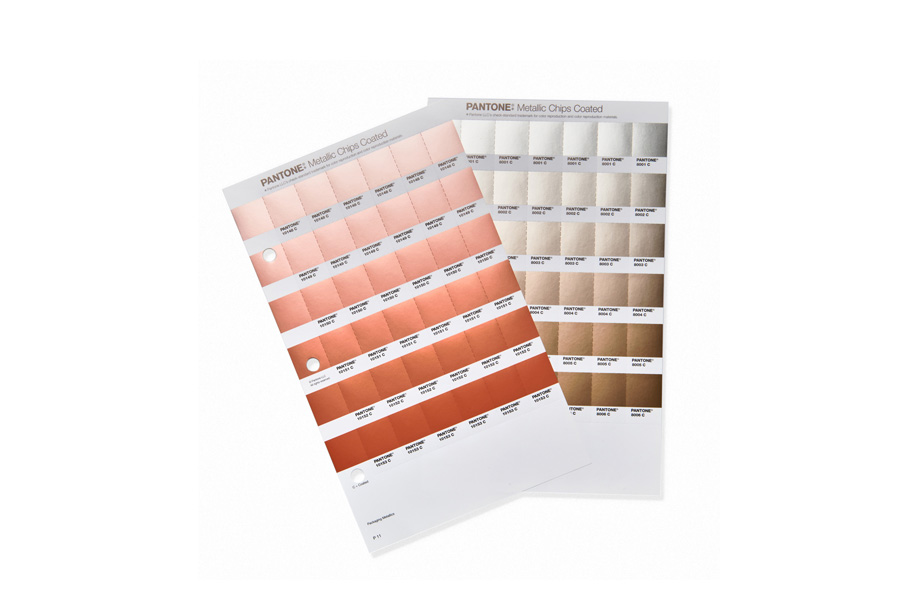 - PANTONE Metallics Chip Buch mit den 54 neuen Metallicfarben und dem neuen Basisfarbton Rose Gold