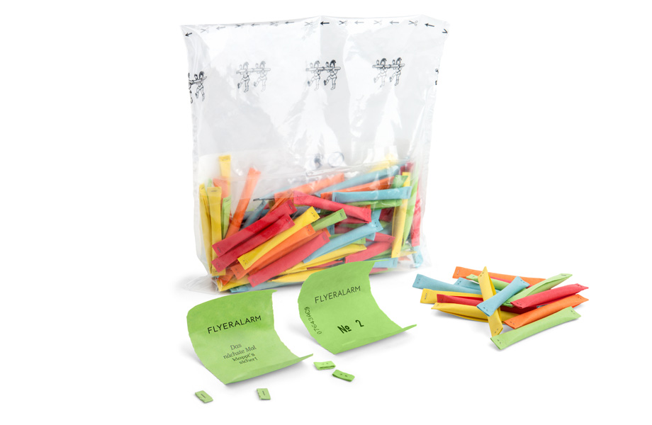 Die versetzen Ihre Kunden garantiert ins Gewinnfieber: individuell bedruckbare Sicherheitslose. Natürlich kann es nicht immer der Hauptgewinn sein. Aber keine Bange, als Trost gibt es lustige Sprüche auf den Nieten, die Teilnehmern mit weniger Glück in Nullkommanichts wieder ein Lächeln auf die Lippen zaubern. Und die Sicherheit? Die entsteht durch seitliche Perforation und Klammern an den Los-Enden – ein versehentliches Aufrollen vor der Ziehung ist somit ausgeschlossen. Egal ob vorgefertigt oder mit Ihrem Logo bedruckt. Mit den robusten Sicherheitslosen in vielen bunten Farben ist Ihr Tombola-Stand auf dem nächsten Event garantiert gut besucht.