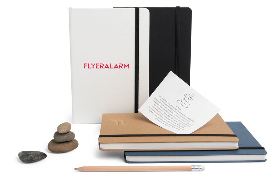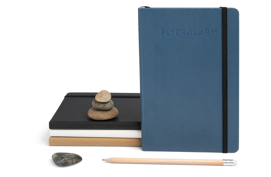 Zoek je een drukproduct van milieuvriendelijk en innovatieve materialen? Dan sla je met deze notitieboeken van gerecycled kraft- en steenpapier de spijker op zijn kop. Steenpapier wordt gemaakt van verpulverde kalksteen. Daar zijn geen houtvezels voor nodig en ook geen water. Het papier is onscheurbaar en er kan onder alle omstandigheden nog op geschreven worden. En om het binnendeel van steenpapier compleet te maken is de kaft gemaakt van kraftpapier uit gecertificeerde duurzame bosbouw, waar je met tampondruk, digitale druk of een preeg je logo of design op kunt laten aanbrengen.
