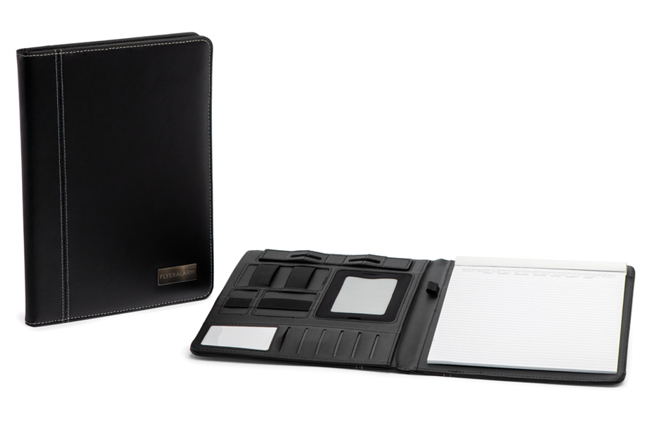 Is het basismateriaal van deze schrijfmap A4 leer? Ja en nee. De omslag van deze schrijfmap is gemaakt van leervezelstof. Want bij de productie van leren schoenen en andere leerproducten ontstaan veel afvalstoffen – snijafval of polijststof. Deze stoffen worden verzameld en hergebruikt om leervezelstof te maken. Het nieuwe materiaal wordt daardoor echt opgewaardeerd (upcycling). Dat zie je ook bij de omslag (hoes) van deze praktische schrijfmap, die ook nog eens geweldig aanvoelt. En op het metalen plaatje laat je natuurlijk een gravure aanbrengen.