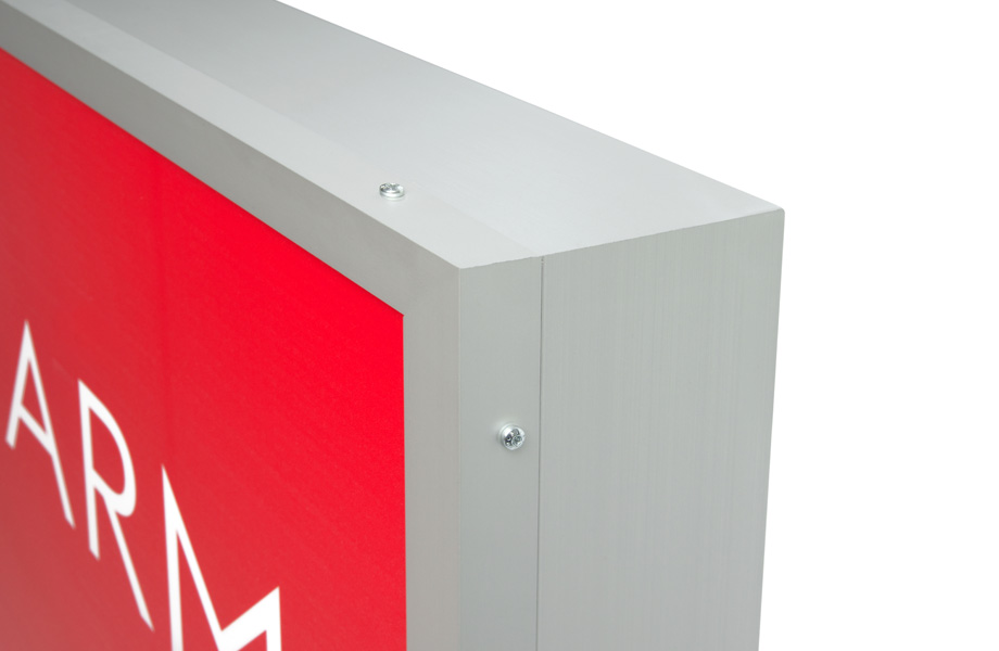 Bei Leuchtkästen wird Ihr Motiv auf eine transparente Folie gedruckt und anschließend auf eine Acrylglasplatte geklebt. Die Platte wird dann entweder in einen Aluminiumrahmen eingefasst und auf die Leuchtmittel montiert, oder als Haube mit 3D-Effekt in den Rahmen eingepasst. Die Bautiefe bleibt dabei immer bei 18 cm. Bei Höhe und Länge gibt es unzählige Formate.