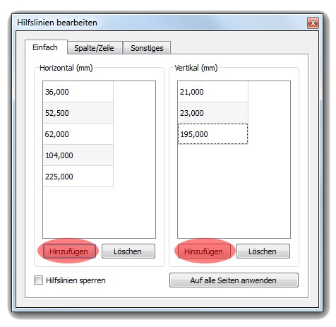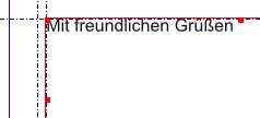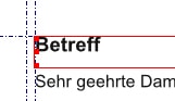 - Haben Sie alles eingegeben, richten Sie den Textrahmen so aus, dass die unterste Zeile ein wenig über der ersten horizontalen Hilfslinie liegt.