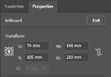 I modsætning til andre Adobe-programmer kan du dog ikke justere højden og bredden direkte i det vindue, der åbnes. I stedet skal du indtaste bredde og højde i fanen “Egenskaber” under punktet “Artboard” og “Transformer”.