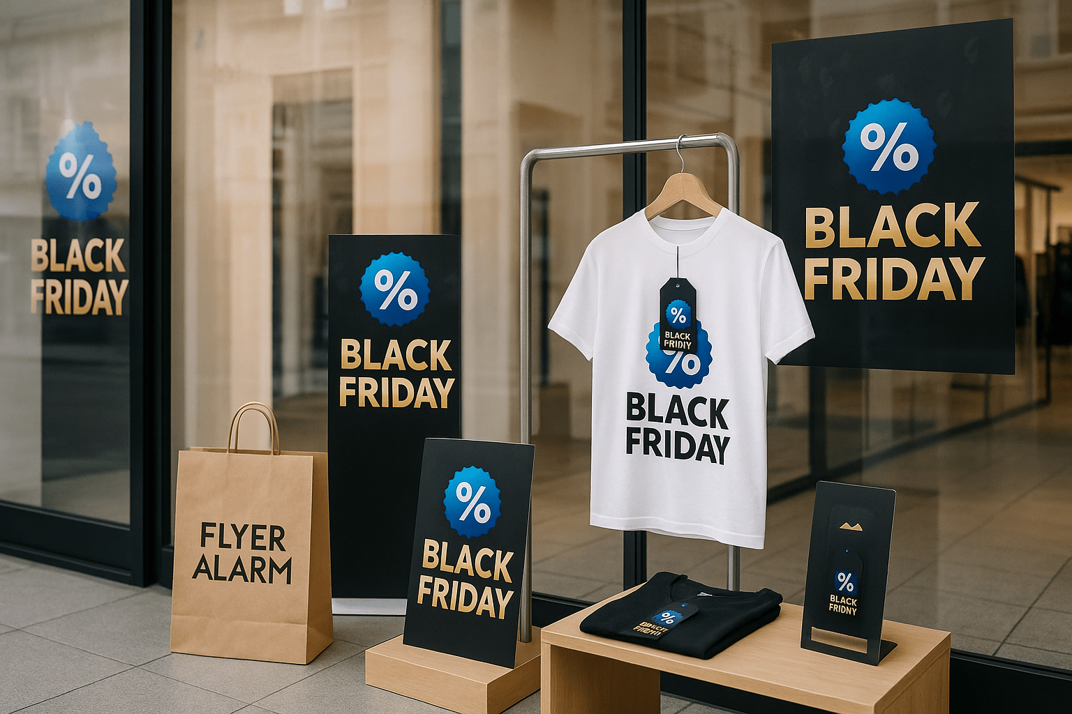 Scopri come promuovere il Black Friday con prodotti di stampa personalizzati. Aumenta la visibilità del tuo negozio con Roll-Up, Manifesti, Bandiere e molto altro su FLYERALARM!
