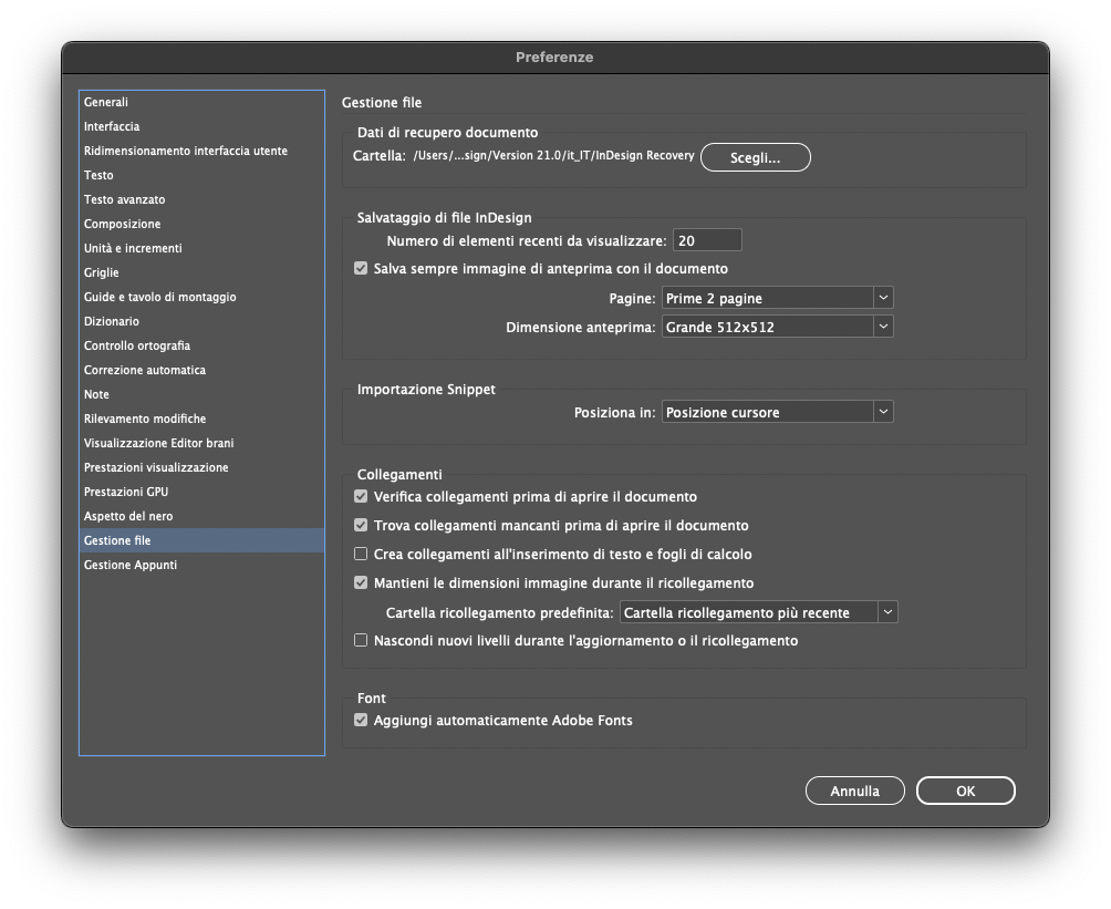 3) Se l’opzione è disattivata, attivatela e riavviate InDesign.