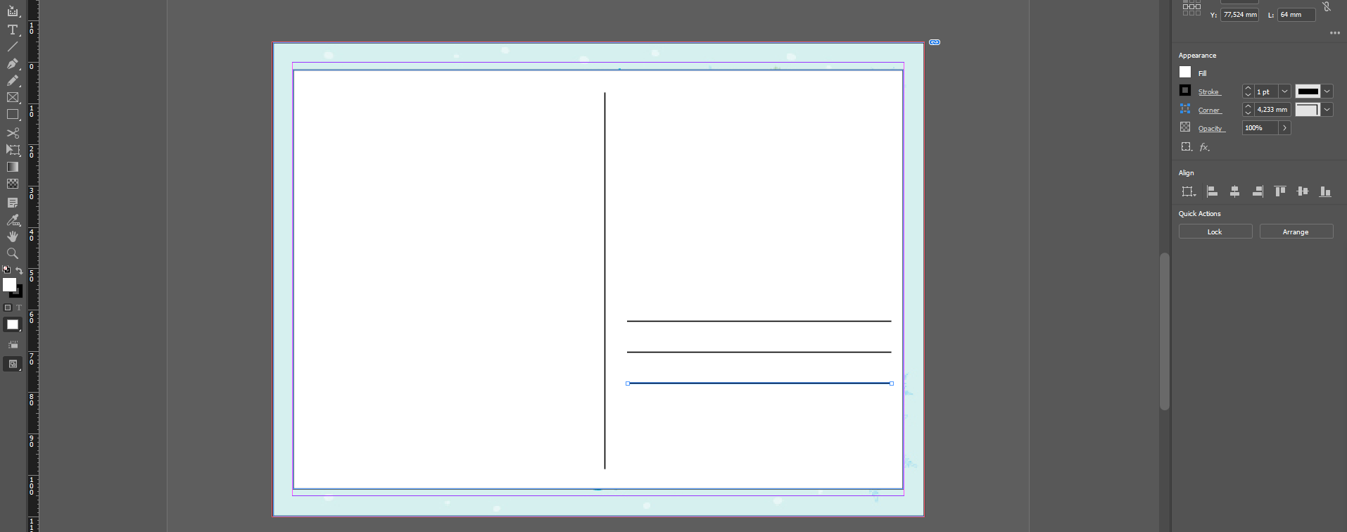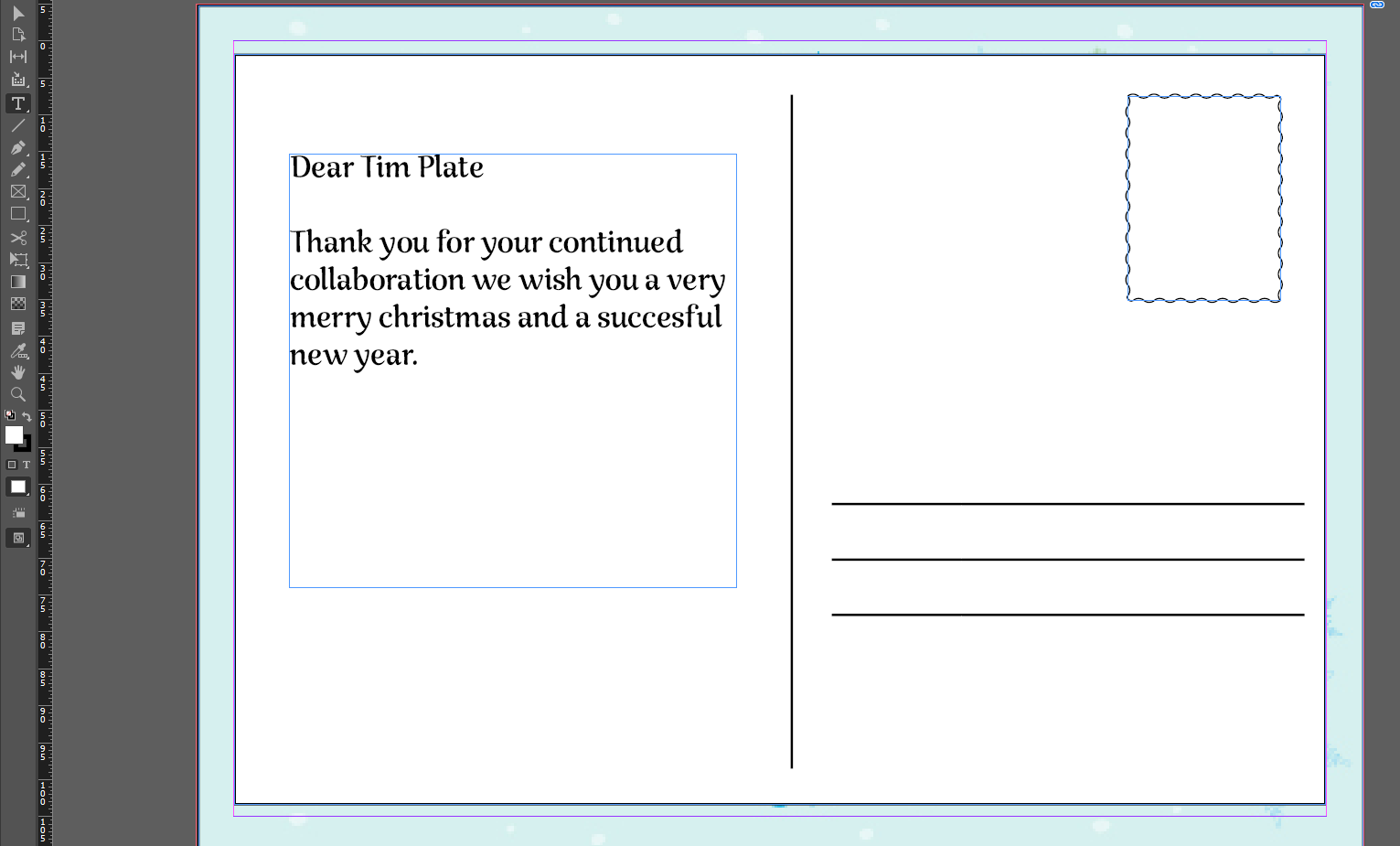 15. Byt till linjeverktyget i det vänstra verktygsfältet och rita en mittlinje och ytterligare några rader för julkortsmottagarens adress.