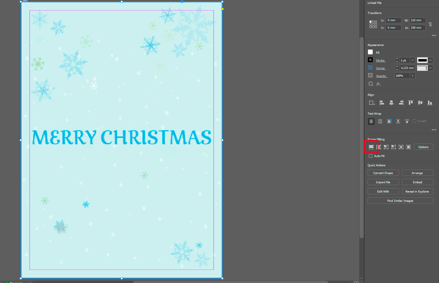 11. Klicka på ikonen Fyll ram proportionellt till höger på panelen Egenskaper. Nu passar layoutmallen automatiskt i rektangeln.