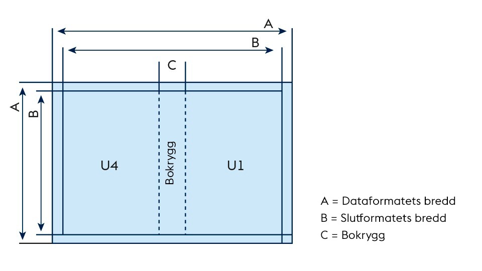 Bredd på slutformat = bredd U4 + bredd U1 + ryggradens tjocklek