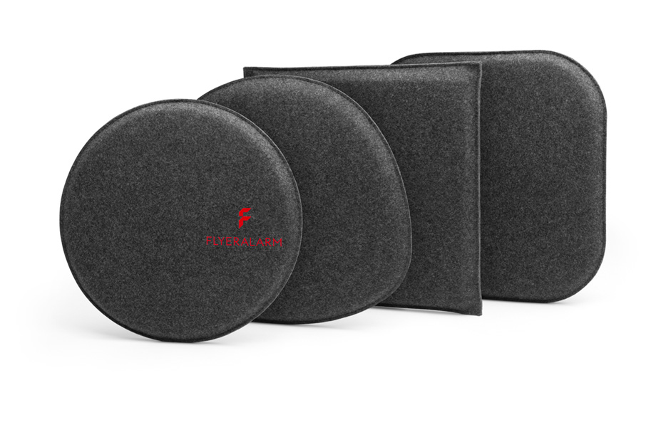 Diese Sitzkissen aus Filz dämpfen nicht nur Sitzflächen harter Stühle, sondern verbreiten auch noch Ihren Firmenclaim. Die Oberseite der runden, ovalen oder quadratischen Filzkissen bedrucken Sie grossflächig mit Ihrem Logo, Slogan oder thematisch passenden Motiven. Der Filz wird übrigens aus Recycling PET hergestellt – gut für’s grüne Gewissen und Ihren Geldbeutel. Das Material können Sie nämlich mit einem feuchten Lappen einfach abwischen.