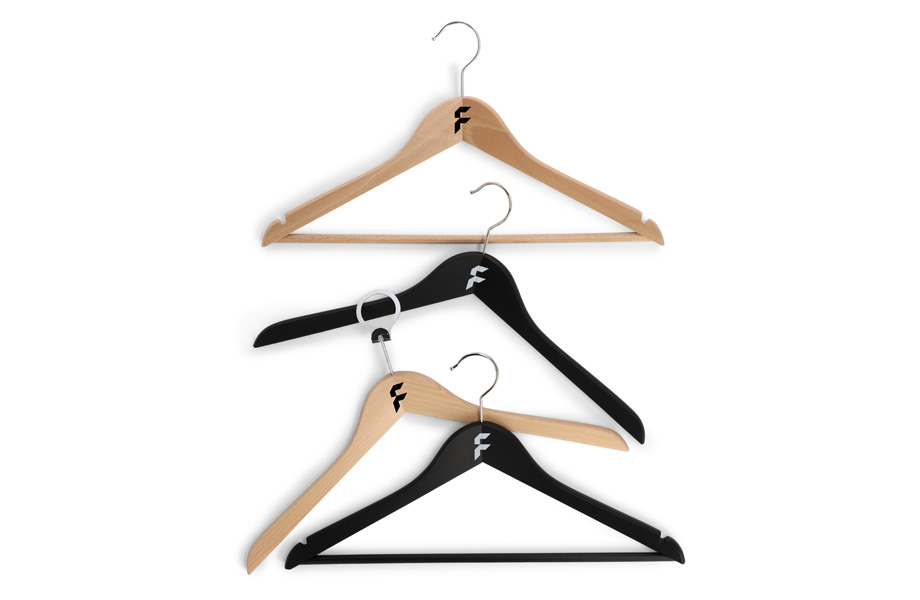 Ob für den zweiten Anzug auf Geschäftsreisen, für das Cocktailkleid am Abend, die Jacken und Mäntel Ihrer Gäste im Hotelzimmer oder die neuste Kollektion in der Modeboutique: Wer häufig unterwegs ist, weiss stabile Kleiderbügel garantiert zu schätzen. Die hier angebotenen Modelle aus massivem Buchenholz sind da keine Ausnahme. Wählen Sie Ihre bevorzugte Ausführung in Schwarz oder natürlicher Holzfarbe, mit oder ohne Hosensteg und Rockeinkerbungen sowie inkl. Haken oder diebstahlsicherem Hotelring. Egal wofür Sie sich auch entscheiden – Ihr Logo oder Emblem direkt unterhalb der Aufhängung wird Ihrer Zielgruppe garantiert ins Auge fallen.