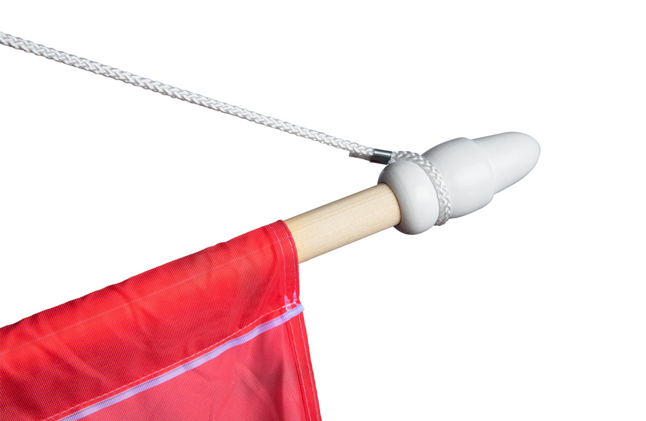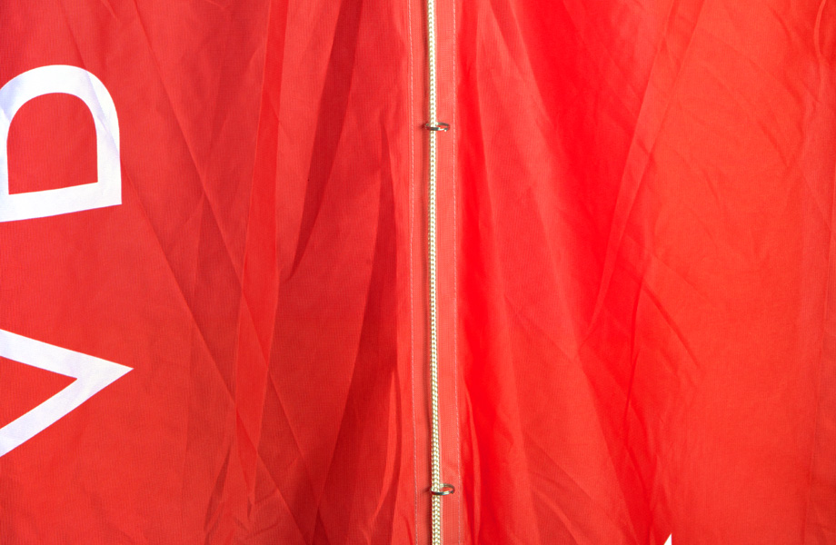 - 110 g Fahnenstoff, 110 g Recycling-Fahnenstoff oder 120 g Lochfilet-Fahnenstoff für geringere Windlast