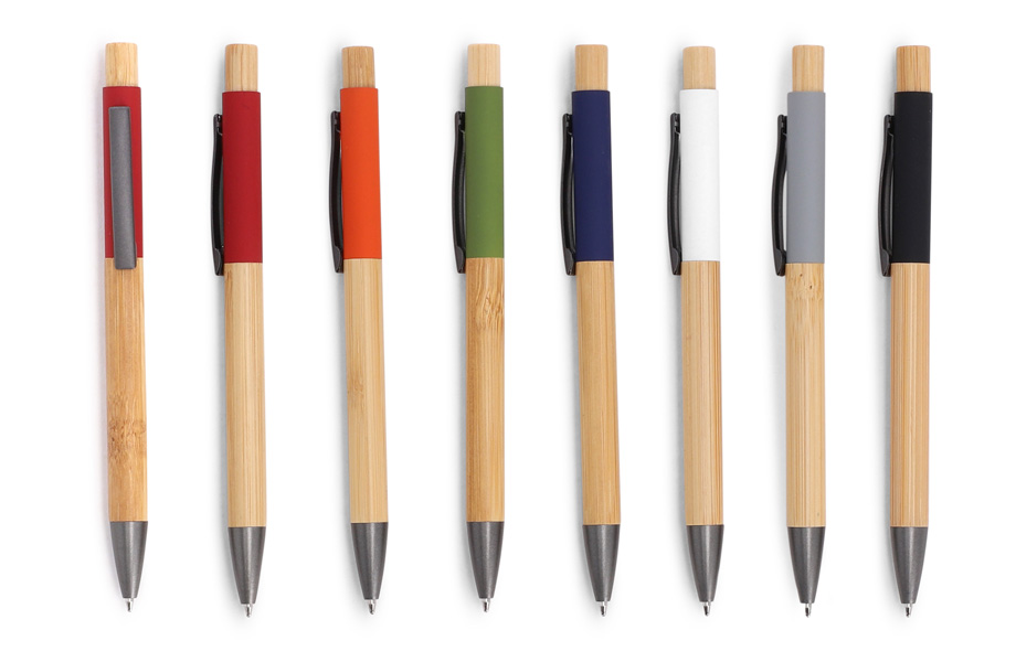 Muster Kugelschreiber Bambus, farbig mit Alu-Elementen - bestellen