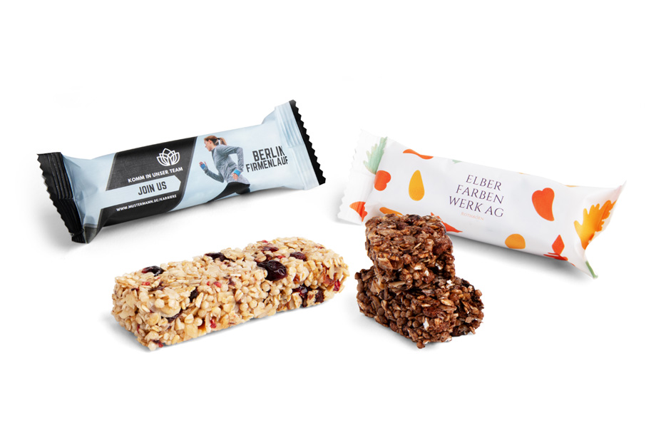 Wie schmecken die verschiedenen Müsliriegel-Varianten? Welche passt wohl am besten zu Ihrer Zielgruppe? Machen Sie den Geschmackstest und begutachten Sie bei dieser Gelegenheit auch gleich die äussere Erscheinung von Verpackung und Inhalt. Hier können Sie sich zu genau diesem Zweck ein einzelnes Muster bestellen.