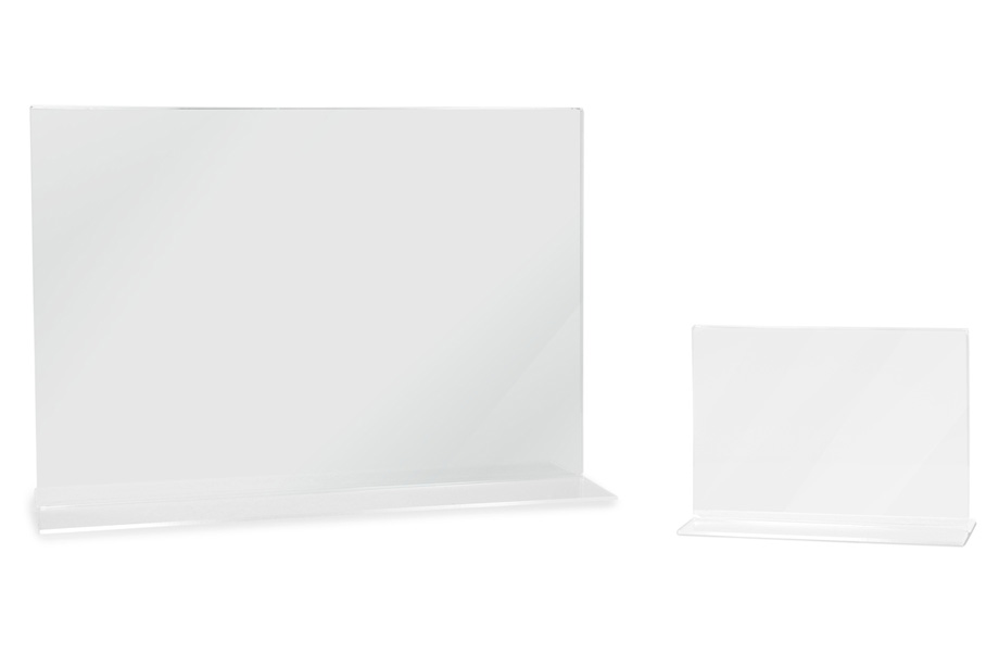 Diese T-Ständer aus glasklarem Acryl bringen Ihre Botschaften perfekt zur Geltung: ob für Angebote im Einzelhandel, als Halterung für Wegweiser in Kliniken oder Menükarten-Halter in Restaurants: Dank beidseitiger Bestückungsoption, dem einfachen Austausch der Inhalte und verschiedener Formate passen sich die T-Ständer jeder Umgebung flexibel an. Auch in der Reisebranche, Hotellerie oder Immobilienverwaltung machen sie eine gute Figur, um Neuheiten, Preise oder Aktionen stilvoll zu präsentieren. Doch testen Sie es am besten selbst!