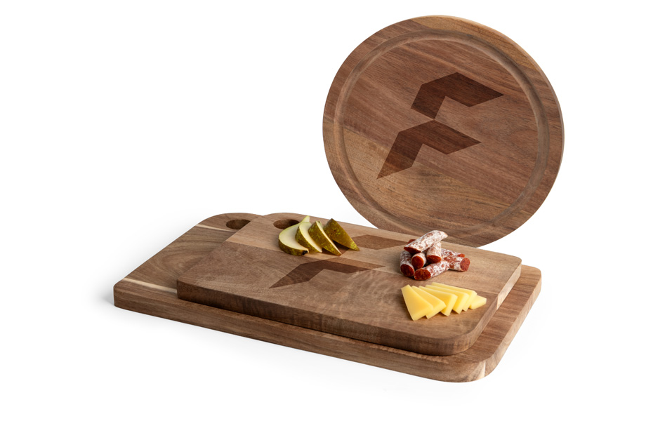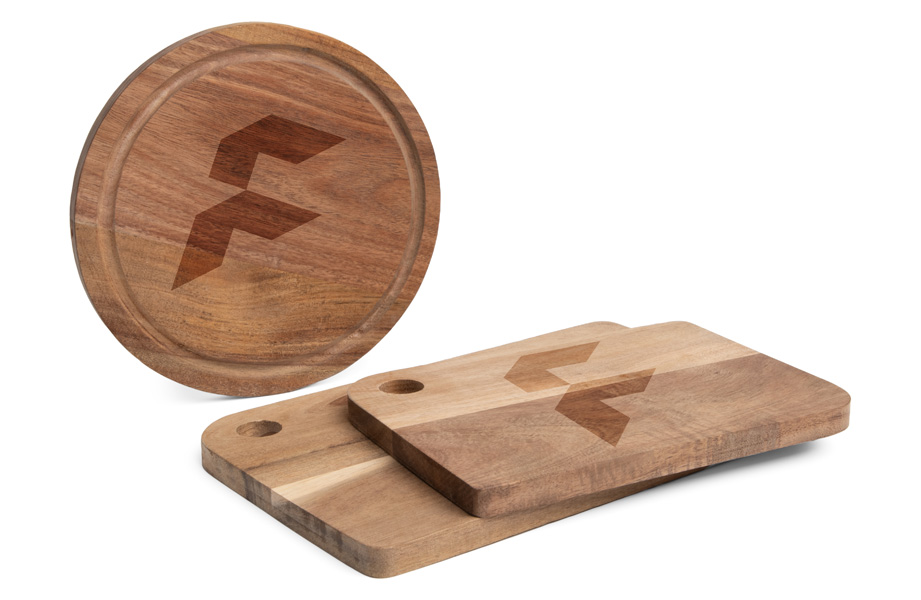 Diese Servier- und Schneidebretter aus robustem Akazienholz sind die perfekten Utensilien für den Küchenalltag Ihrer Kundinnen und Kunden. Ob zum Schneiden frischer Zutaten oder zum stilvollen Anrichten kleiner Snacks – sie überzeugen mit Funktionalität und Natürlichkeit. Alle drei Varianten der 15 mm dicken Schneidbretter wurden mit Sojabohnenöl vorbehandelt, damit die Holzmaserung optimal zur Geltung kommt und das Material geschützt bleibt. Fehlt eigentlich nur noch Ihr Logo als gut platzierte Logogravur direkt auf den Brettchen.