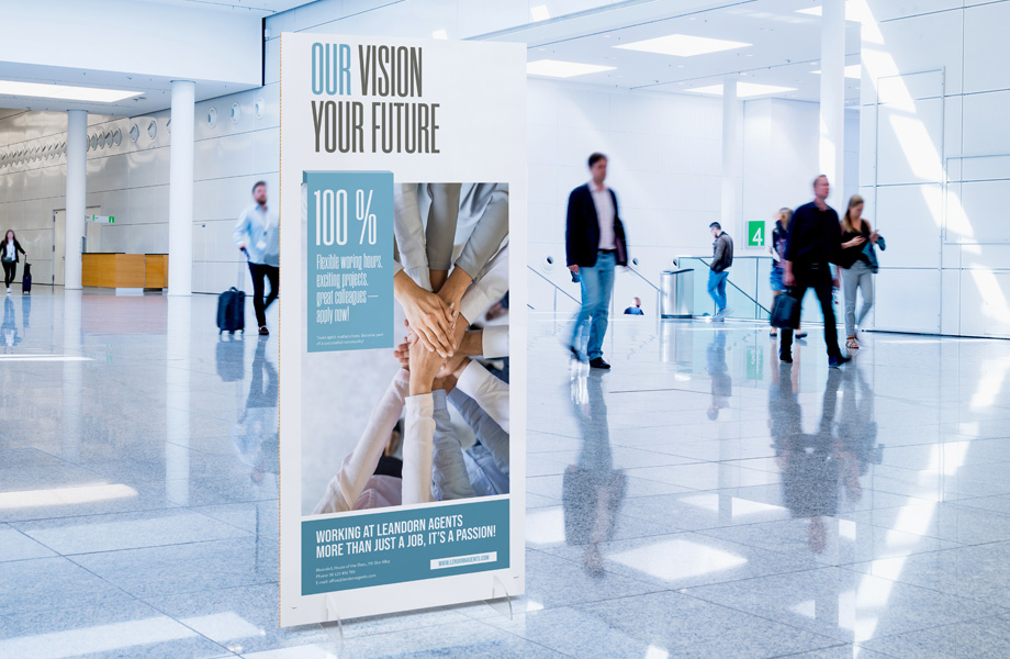 Ob für Messen, Events, Verkaufsflächen oder Schaufenster – die Wabenkarton-Displays sind ebenso leicht wie stabil und setzen Ihre Botschaft überall eindrucksvoll in Szene. Sie haben die Wahl zwischen verschiedenen Formaten und können Vorder- sowie Rückseite nach Ihren Wünschen bedrucken. Dank der mitgelieferten Acryl-Standfüße stehen die Displays sicher und sind im Handumdrehen einsatzbereit.