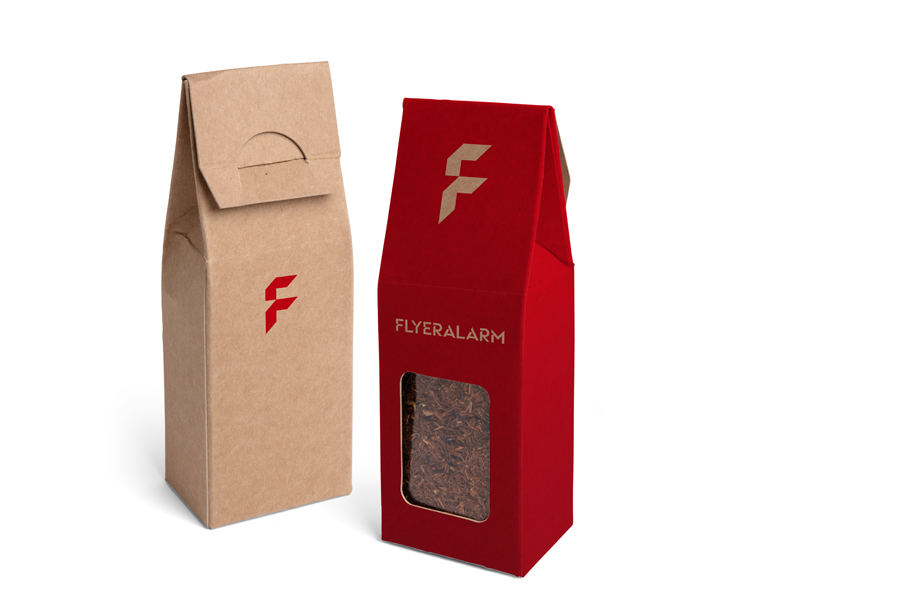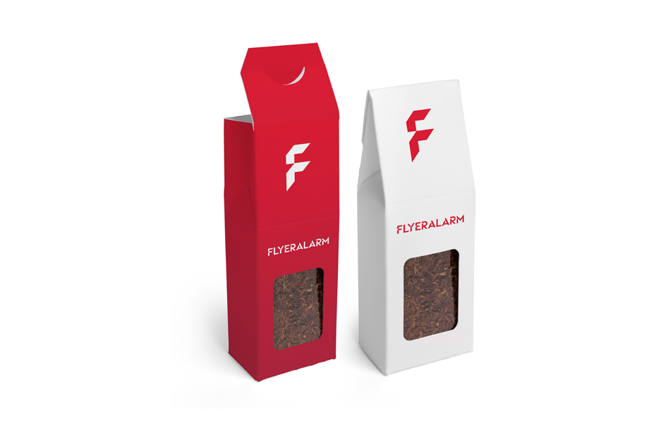 Ob für bereits abgepackten Tee, Gewürze oder kleine Süßigkeiten – diese Teeverpackungen sind für verschiedenste leichte Inhalte geeignet. Sie bieten sich außerdem hervorragend als originelle Verpackung für kleine Werbegeschenke an. Dank des integrierten Sichtfensters erkennen Ihre Kundinnen und Kunden auf einen Blick, was sich in der Schachtel befindet, und können sich so gleich doppelt auf den Inhalt freuen. Die Außenseite lässt sich obendrein komplett individualisieren und somit optimal an Ihre Marke anpassen.