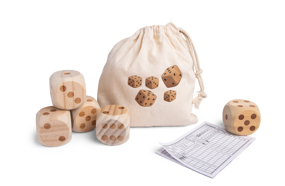 - 5 Holzwürfel in Stoffbeutel