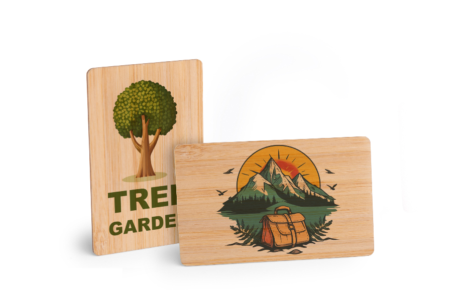 Diese Visitenkarten aus Holz heben sich ab. Spürbar anders, sichtbar besonders und gemacht für alle, die einen bleibenden Eindruck hinterlassen wollen. Der Werkstoff: echtes Holz. Der Aufbau: ein stabiler Lindenholzkern mit Bambus-Decklagen. Die Optik: markant, strukturiert und hochwertig. Mit einer Stärke von ca. 1,4 mm liegen die Karten gut in der Hand und vermitteln sofort Qualität und Substanz. Ob im Hoch- oder Querformat, einseitig oder beidseitig bedruckt – die natürliche Oberfläche macht jede Karte zum Unikat und zum Aushängeschild für Unternehmen, die Wert auf Authentizität legen.