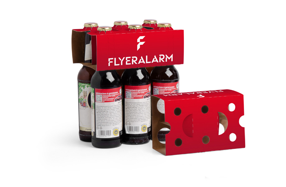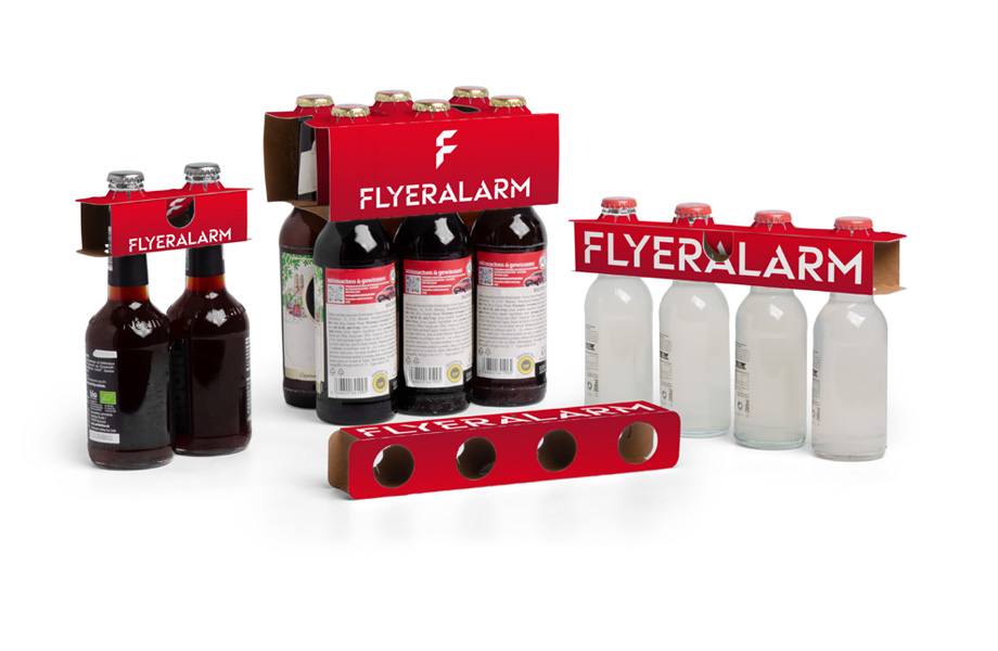 Einer für alle: Dieser Flaschenträger aus stabilem Karton trägt bis zu sechs Flaschen ohne Probleme sicher. Und selbst wenn schon jemand Durst hatte und eine Flasche stibitzt: Der Träger bleibt stabil und einsatzbereit. Der ideale Begleiter für Events, Feiern oder als charmantes Werbegeschenk. Erst recht dank der großzügigen Ober- und Seitenflächen, die ausreichend Platz für individuelle Bedruckungen bieten.
