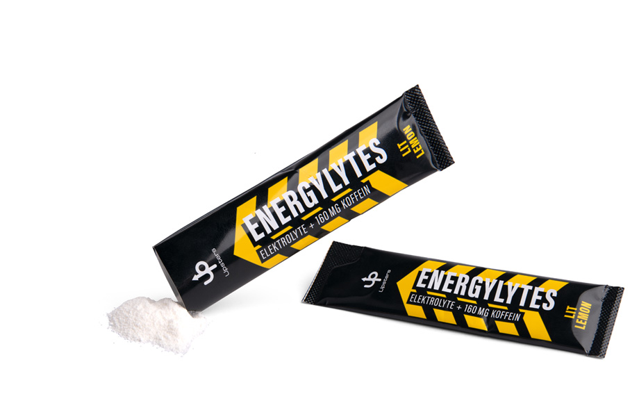 Zitrone: Natriumcitrat, Säuerungsmittel Citronensäure, L-Tyrosin, Natriumchlorid, Tri-Kaliumcitrat, Magnesiumcarbonat, Tri-Magnesiumdicitrat, Koffein (2,5%), Kaliumchlorid, Aroma, Süßungsmittel Sucralose, Trennmittel Siliciumdioxid, Süßungsmittel Steviolglycoside aus Stevia, Farbstoff Riboflavin-5´-phosphat-Natrium
