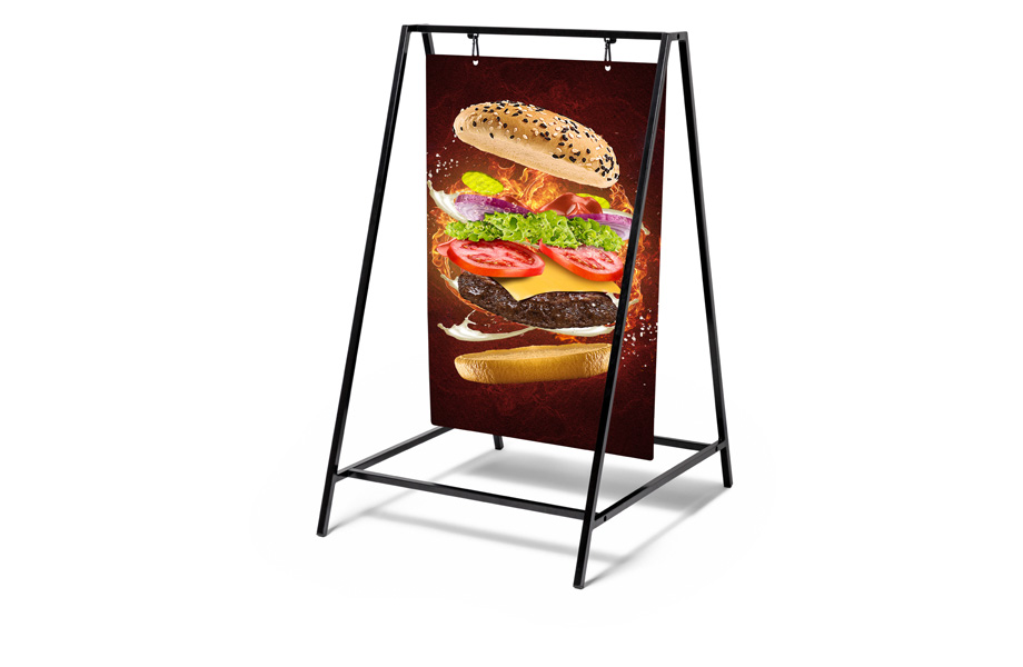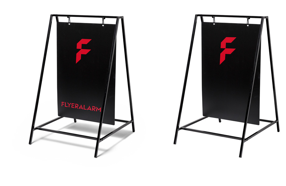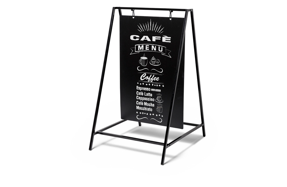 Schlank, stylisch und ganz auf den Punkt: Der Kreidetafel Kundenstopper Swing ist mit seinem schmalen Rahmen der Minimalist unter den Kundenstoppern – und genau deshalb so ein Blickfang. Schwarzer Stahlrahmen, modernes Industriedesign und eine wetterfeste beschreibbare Kreidetafel machen ihn zur idealen Werbefläche für Restaurants, Cafés, Shops und Büros. Für einen besonderen Werbeeffekt lassen Sie die Tafeln vollflächig bedrucken – und das sogar in Farbe und fotorealistischer Qualität.