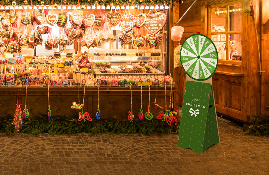 Wer dreht nicht gerne mal am Rad und versucht sein Glück? Das große Glücksrad ist der Hingucker für Ihre nächste Aktion – ob auf Messen, bei Sportevents, Jubiläen oder Neueröffnungen im Einzelhandel. Die natürliche Holzoptik des Gestells hebt sich vom üblichen Kunststoff-Look ab und sorgt für einen sympathischen Auftritt. Durch die Tragegriffe ist das Glücksrad besonders leicht transportierbar. Das Holzgestell und die Drehscheibe bieten zudem jede Menge Platz für Ihren Werbeaufdruck – so rücken Sie Ihre Marke wirkungsvoll in den Fokus.