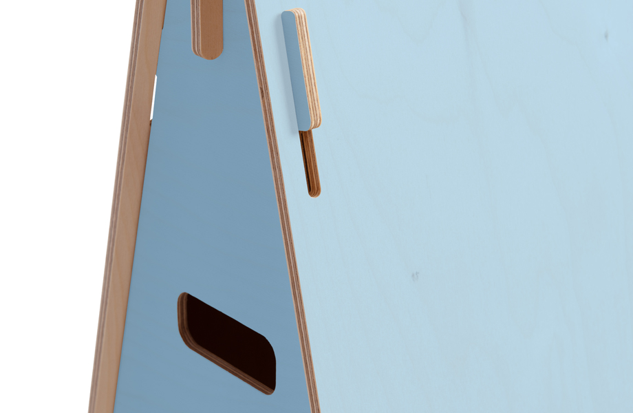 - Holzgestell mit Tragegriffen und aufgesteckter Drehscheibe aus Acryl