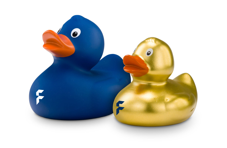 Die Badeenten bringen nicht nur Farbe ins Wasser, sondern auch in Ihre Markenkommunikation. Von klassischem Gelb über glänzendes Gold bis hin zu edlem Schwarz – Sie wählen aus zahlreichen Farbtönen genau die passende Variante für Ihr Unternehmen. Entscheiden Sie sich entweder für die Standardgröße von ca. 8 cm oder für kleinere Versionen mit ca. 6 cm oder ca. 4 cm. Ihr Logo können Sie in jedem Fall vorne auf die Ente drucken lassen. Ein Werbeartikel, der Spaß macht und im Gedächtnis bleibt!