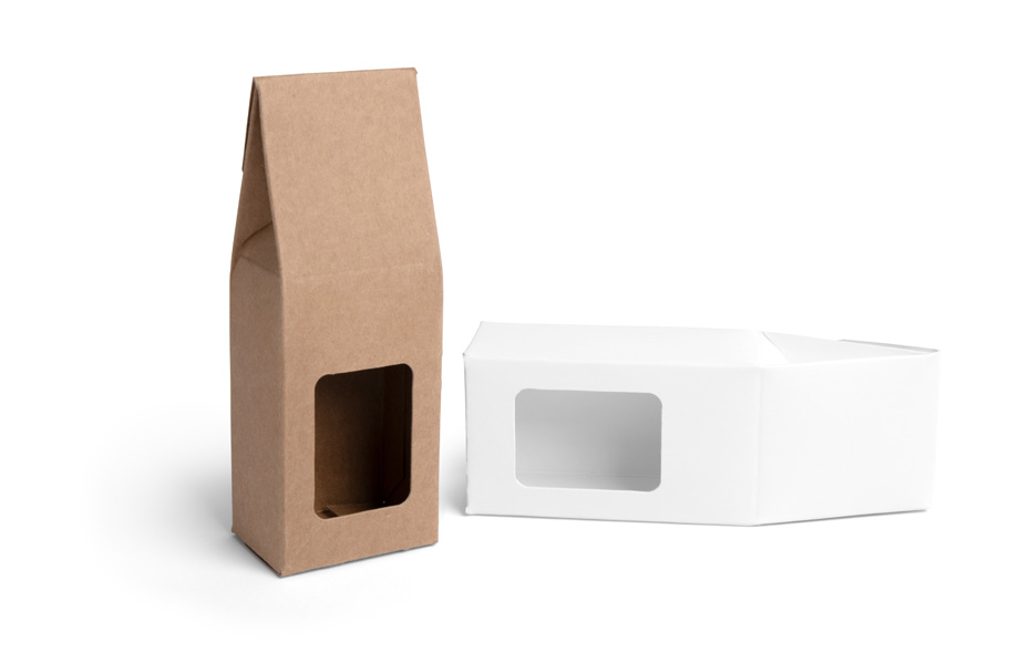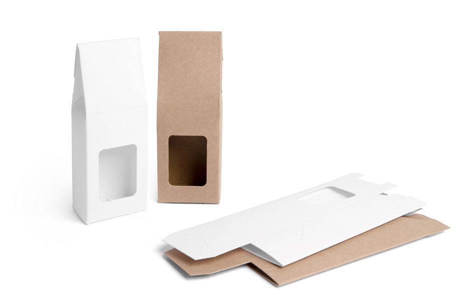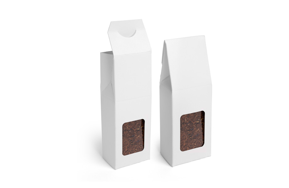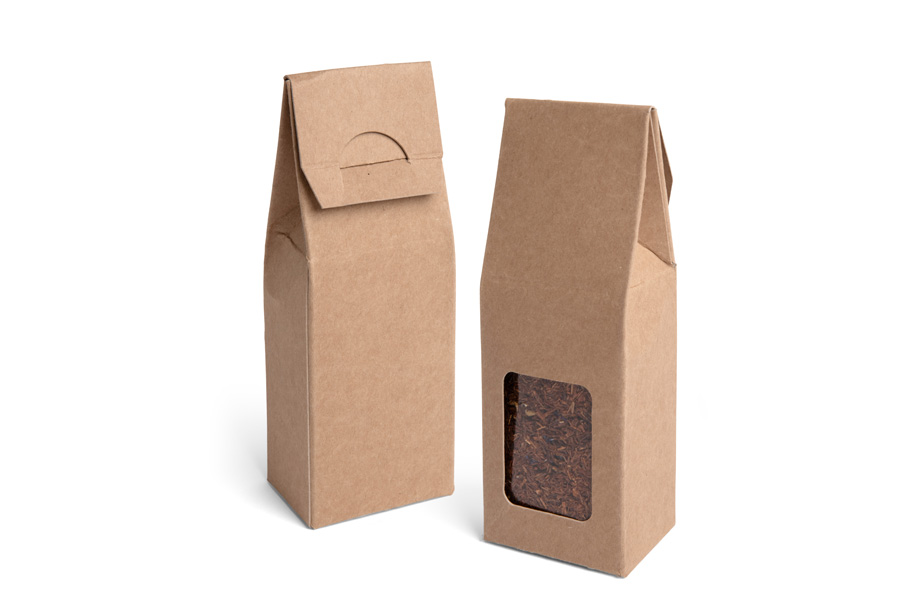 - Aroma-Verpackung mit Sichtfenster, Giebeldach und Steckboden