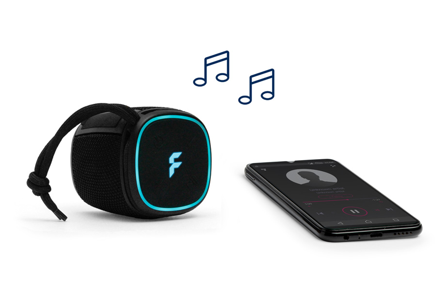 Kraftvoller Sound, überall dort, wo sich Ihre Zielgruppe gerade aufhält – das bietet Ihnen der Schwarzwolf® Bluetooth Lautsprecher HERMON. Die moderne Bluetooth 5.1-Technologie verspricht kabellosen Musikgenuss mit bis zu 20 Metern Reichweite. Das robuste, IPX5-wasserdichte Gehäuse und die praktische Handschlaufe machen den Markenlautsprecher außerdem ideal für unterwegs. Ihr Logo wird auf dem Bedienfeld eingraviert und durch LED-Lichteffekte in wechselnden Farben betont. Perfekt als hochwertiges Werbegeschenk oder für Ihre nächste Firmenaktion.