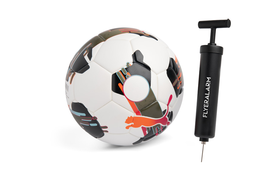 Die handliche Ballpumpe eignet sich perfekt für Vereine, Verbände und den Einzelhandel. Zwei mitgelieferte Schraubaufsätze, die platzsparend im Griff verstaut werden können, machen sie flexibel einsetzbar für Fußbälle, Spielbälle und Standardventile von Luftmatratzen. Das robuste Kunststoffgehäuse liegt gut in der Hand und bietet mittig eine Fläche für Ihren Werbeaufdruck