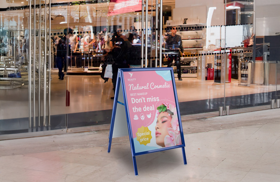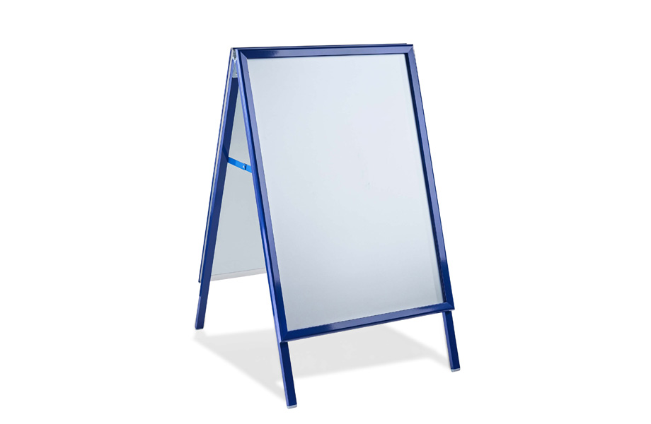 Der Kundenstopper Klassik ist ein zuverlässiger Eyecatcher für den Innen- wie für den Außenbereich. Der wetterfeste, doppelseitig bestückbare Aluminium-Klapprahmen in Blau fällt auf und lenkt den Blick auf Ihre Werbebotschaft. Dank UV-beständiger Antireflexfolie bleibt Ihr Plakat auch bei Sonne gut lesbar, während die verzinkte, rostfreie Metallrückwand für eine lange Haltbarkeit sorgt. Ob im Geschäft, in der Gastro, bei Messen oder in Freizeitbetrieben – mit dem Kundenstopper Klassik blau präsentieren Sie Angebote, Aktionen oder Hinweise flexibel und aufmerksamkeitsstark.