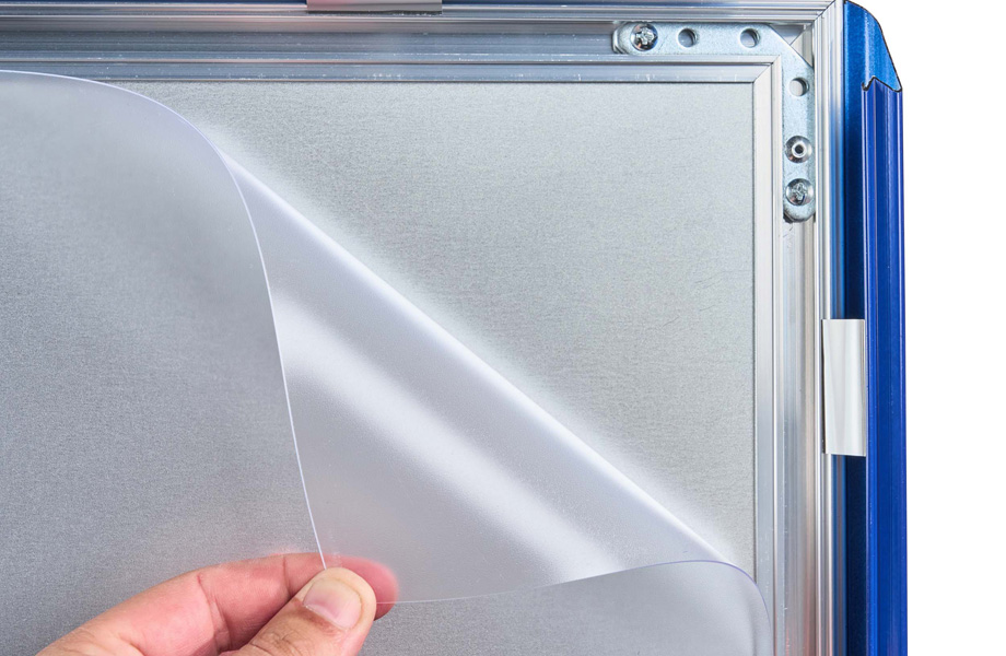 Material: Aluminium Klapprahmen, verzinkte Metallrückwand; Sichtbarer Bereich: 575 x 820 mm; Profilbreite 32 mm; Gesamtgröße BxH: 630 x 1080 mm; Zubehör: UV-beständige Antireflex-Schutzfolien