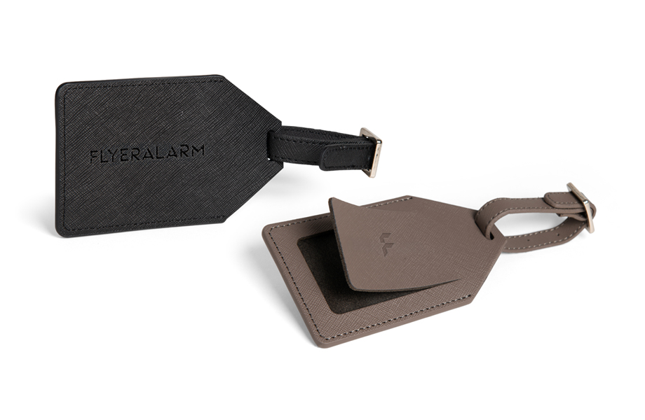 Der hochwertige Kofferanhänger aus strukturiertem Leder verleiht Ihrem Markenauftritt eine edle Note. In klassischem Schwarz oder modernem Grau-Braun passt er zu jedem Reisegepäck. Ihre Botschaft wird per Blindprägung mittig auf Vorder- oder Rückseite veredelt – dezent, aber wirkungsvoll. Der Veredelungsbereich bietet genügend Platz für Ihr Logo oder Ihren Claim. Ideal als Werbeartikel für Messen oder für Reise- und Touristikunternehmen.