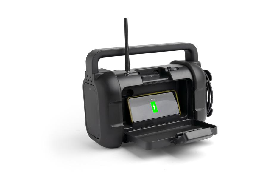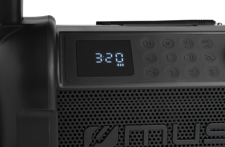 Wenn's laut wird, bleibt dieses Radio gelassen: Das Muse Arbeitsradio bringt kräftigen Sound auf jede Baustelle, in jede Werkstatt oder aufs Gerüst. Robust, spritzwassergeschützt und mit praktischem Smartphone-Fach – hier trifft Musik auf Funktion. Und das Beste: Das Logo ist immer sichtbar, direkt auf dem zentralen Bedienknopf.