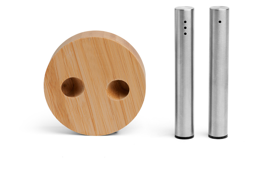Sie wollen prüfen, ob der Bambusständer die Salz- und Pfefferstreuer auch wirklich sicher hält? Oder wollen Sie sich von der Wirkung des Sets auf dem Esstisch erst selbst überzeugen, bevor Sie es an treue Kundinnen und Kunden oder Gäste verschenken? Dann bestellen Sie jetzt ein ungraviertes Muster als Einzelexemplar und machen Sie den Test.
