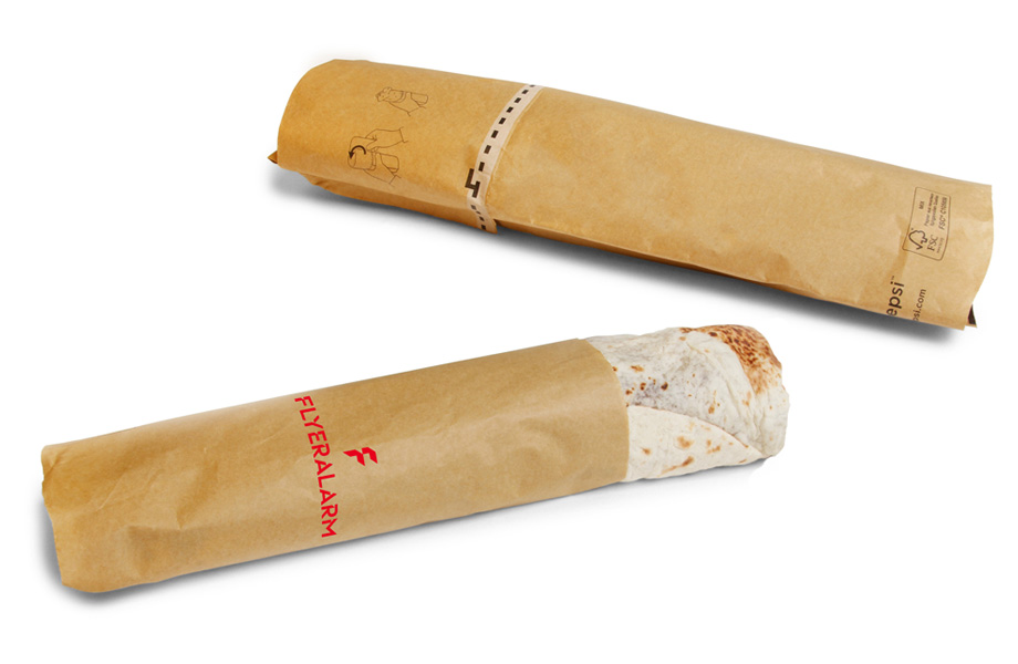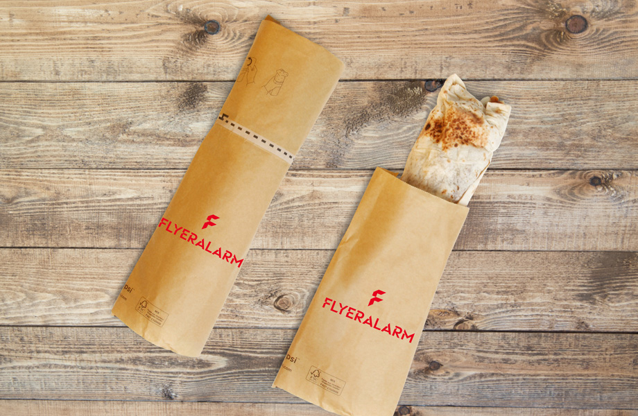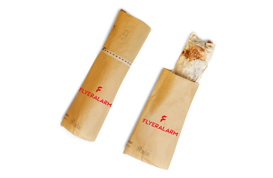 Nicht selten endet der Gang zum Dönerladen oder zum Lieblings-Mexikaner nach dem Genuss von Dürüm, Burrito und Co. mit einem großen Berg Alufolie- und Plastikmüll. DieWraptüten RollBag von Haepsi aus nachhaltigen Kraftpapier machen Schluss damit. Sie lassen sich je nach Größe der Lebensmittel individuell anpassen, sind fettdicht wie auch temperaturbeständig. Perfekt also auch zum Mitnehmen von Speisen. So kommt auch Ihr Logo, das per Digitaldruck auf der Frontseite seinen Platz findet, auf die Straßen und erregt die Aufmerksamkeit potentieller Kundinnen und Kunden.