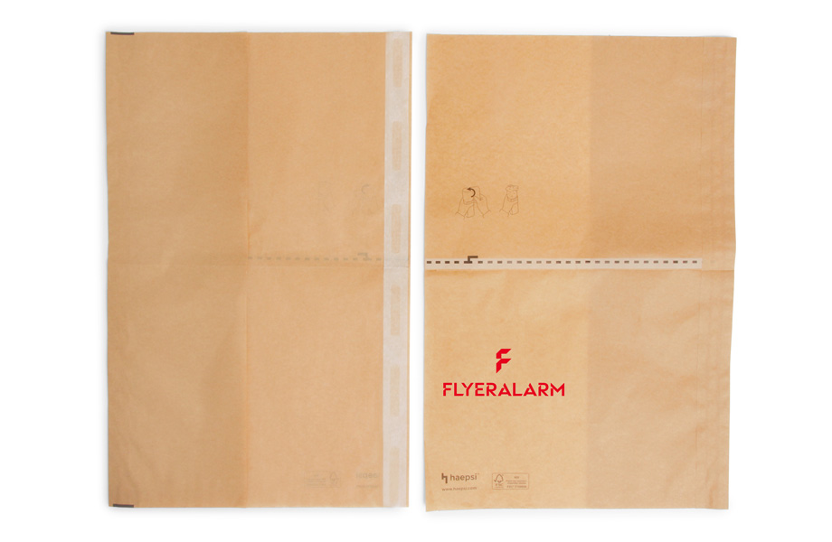 Gute Thermowirkung, inklusive Haftklebeverschluss und Aufreißlasche, ideal auch als ToGo-Verpackung geeignet; Material: 50 g Kraftpapier braun; Farbigkeit: 4/0-farbig; Format: Innen (Maximale Wrapgröße): 12 x 30 cm; Außen/Plano: 26 x 40 cm