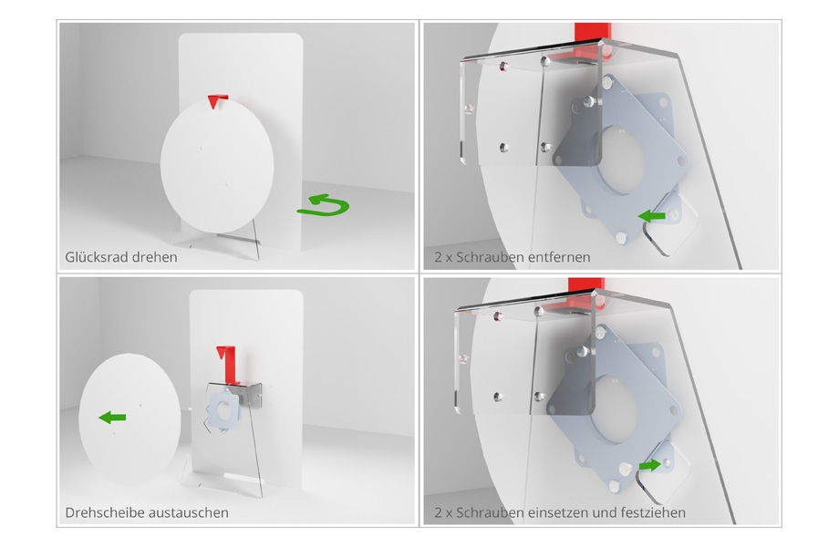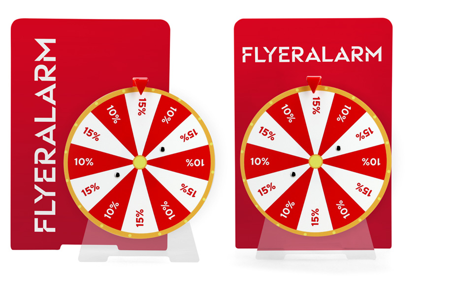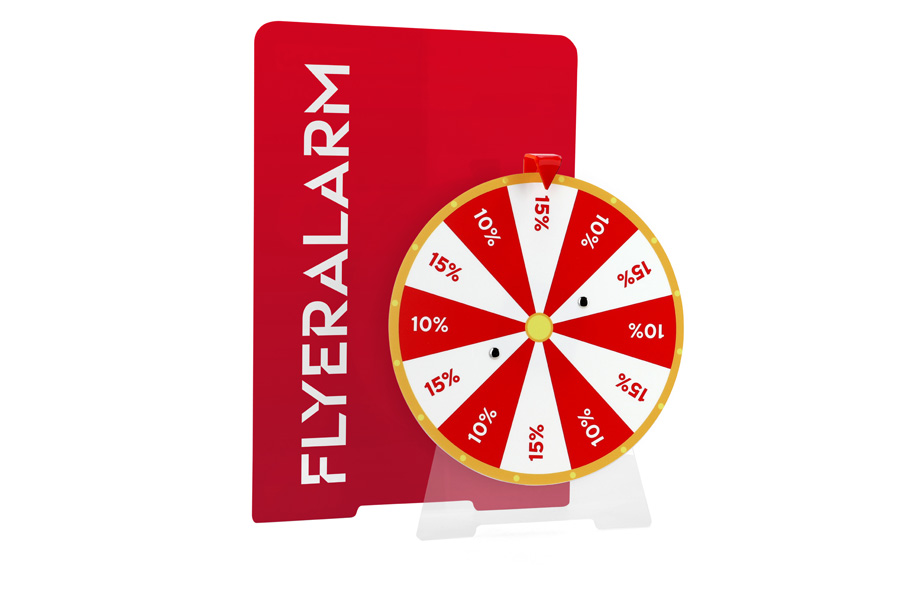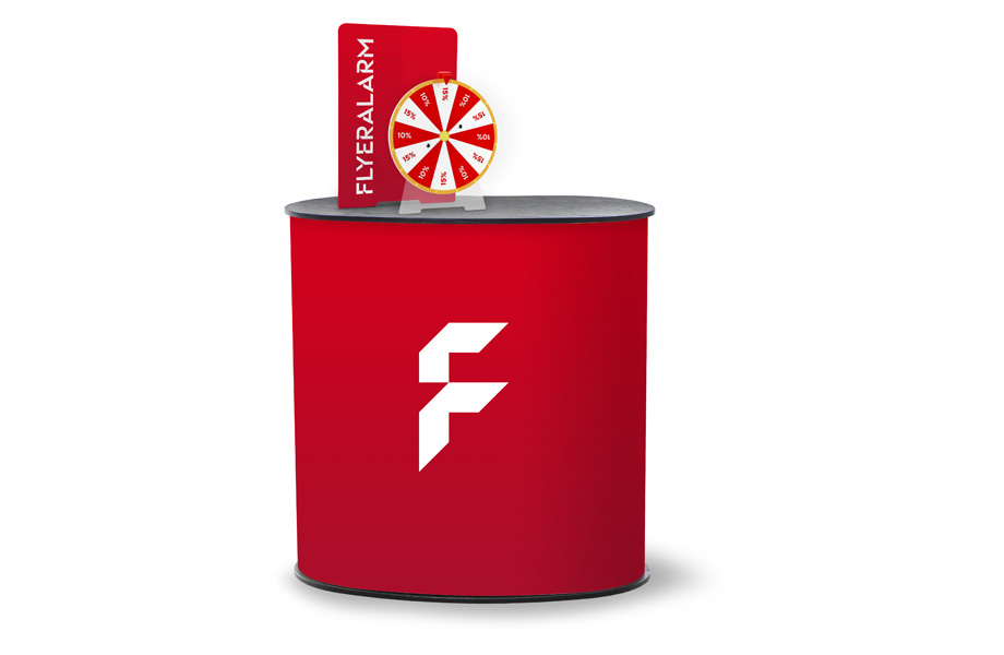 „Wer hat noch nicht? Wer will nochmal?“ – ob in der Messehalle, auf dem Gewerbefest oder zu zahlreichen Gelegenheiten im eigenen Geschäft oder Showroom: Wenn sich das Glücksrad dreht, sind unweigerlich alle Augenpaare darauf gerichtet. Dieses Phänomen sollten Sie sich zu Nutze machen! Bestellen Sie jetzt hochwertige Glücksräder inkl. Topschild und bedrucken Sie beide Bestandteile mit Ihrem Layout. Danach nur noch aufmerksamkeitsstark auf Messetheke, Empfangstresen oder Podium platzieren und im Handumdrehen neue potenzielle Kundschaft anlocken.