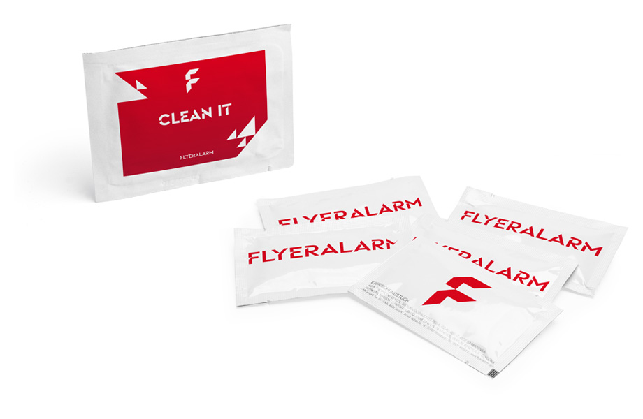 Türklinken, Geländer oder Haltestangen in Bus und Bahn sind ein Paradies für Bakterien und Viren. Verschaffen Sie Ihren Kundinnen und Kunden oder der Belegschaft auch unterwegs eine wohltuende Handhygiene und verteilen Sie die Desinfektionstücher als Werbemittel. Natürlich können Sie die Vorderseite der Sachets großflächig mit Ihrem Logo, Claim oder einem passenden Spruch bedrucken – dank fotorealistischem Digitaldruck sind Ihrer Fantasie keine Grenzen gesetzt.