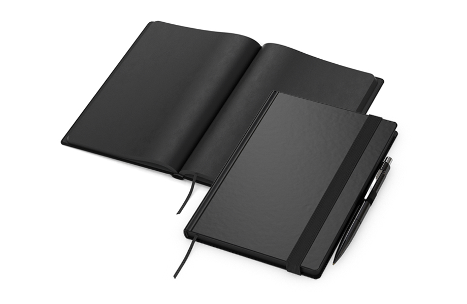 Die Notizbücher aus Schwarzpapier sehen ganz außergewöhnlich aus – aber lässt sich auf dem Schwarzpapier auch angenehm Schreiben? Wie gut rollt der Kugelschreiber mit Silbermine? Und sieht man die Blindprägung auf dem Umschlag überhaupt richtig? Bestellen Sie jetzt ein Musterexemplar mit Beispiel-Prägung und finden Sie es heraus.