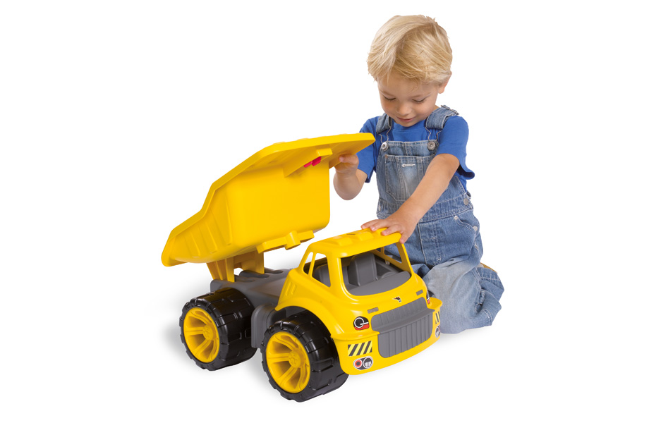 Riesentruck für Riesenspaß: Die Ladefläche des BIG Power Worker Maxi Trucks fast bis zu 4,2 Liter Bausteine, Sand und was Kinder eben noch so mit dem Laster transportieren. Dank der widerstandsfähigen Softreifen hinterlässt der Truck auch auf Böden im Innenraum keine unschönen Spuren. Mit einem individuell gestaltbaren Etikett auf der Seitenwand machen Sie zudem aus jedem BIG Power Worker Maxi Truck ein individualisiertes Spielzeug.