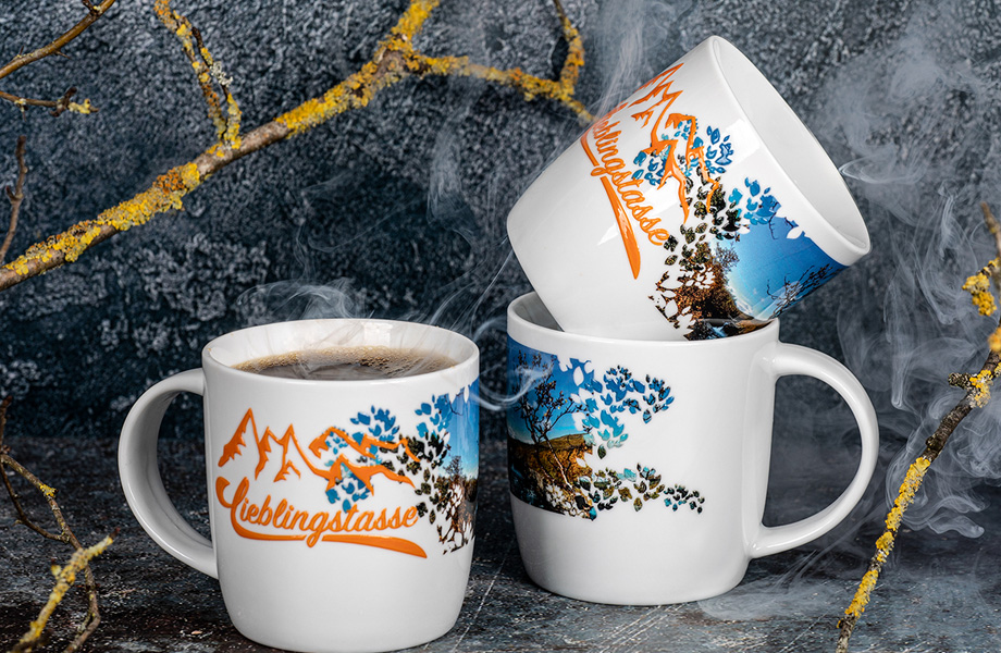 På disse kopper kan dit mærke ikke blot ses, men også mærkes. Suppler dit fotorealistiske tryk med tredimensional relieflak. Uanset om du ønsker at sætte mere fokus på dit logo eller gøre dit slogan mærkbart i form af ren relieflak – disse kopper vækker under alle omstændigheder opmærksomhed.