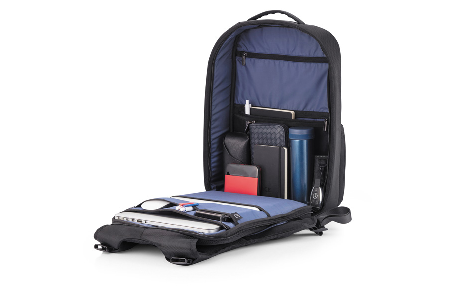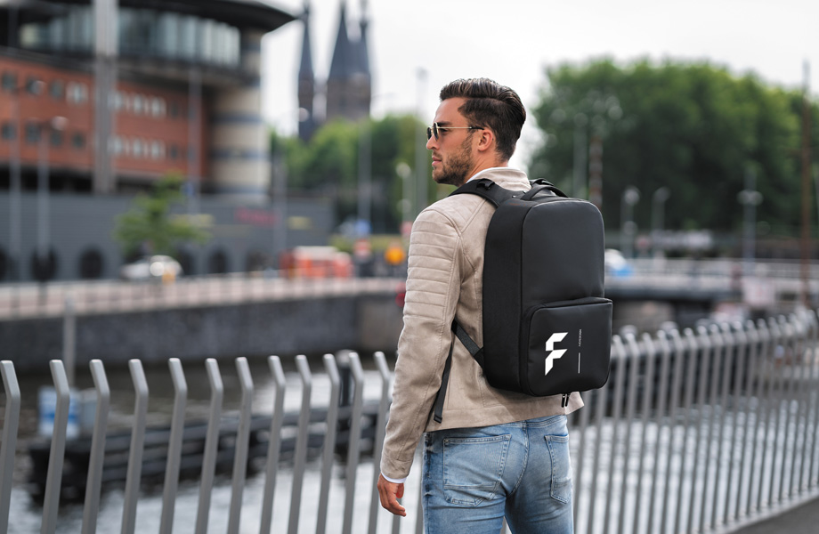 Til forretningsmøde om morgenen og af sted til fitnesscentret om aftenen – de praktiske 2-i-1-rygsække er selvfølgelig altid med. I hovedrummet, som der er adgang til via skjulte lynlåse på bagsiden, er der i de forskellige lommer rigelig plads til diverse arbejdsredskaber samt en laptop. Den RFID-beskyttede lomme på bagsiden kan desuden bruges til sikker opbevaring af værdigenstande. Ved hjælp af udvidelsen af tasken på forsiden kan business-rygsækkene forvandles til store sportstasker i en håndevending. Faktoren bæredygtighed kommer heller ikke til kort. Rygsækkene består nemlig af genvundne PET-flasker, hvilket fuldt ud kan kontrolleres ved hjælp af AWARE™ Tracer-partikler, der er vævet ind i stoffet. Er det ikke de perfekte forudsætninger for at forsyne rygsækkene med dit logo?