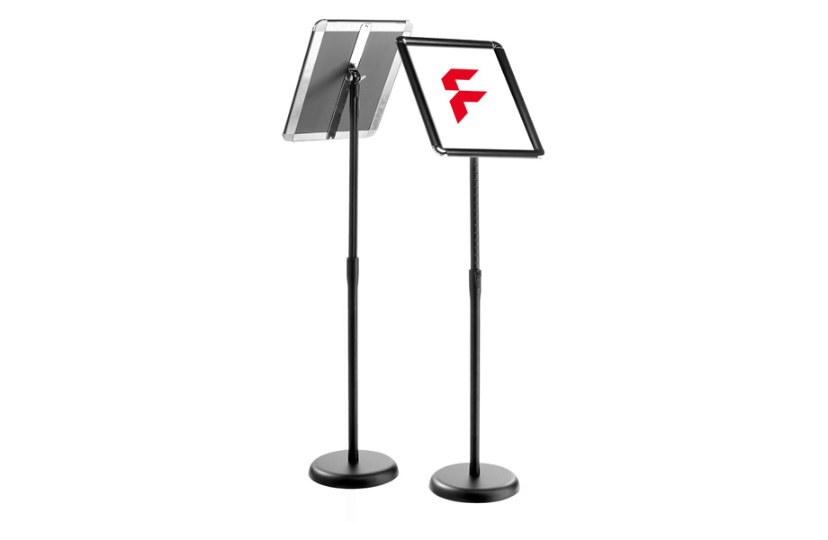 De højdejusterbare infostandere med sammenklappelig ramme er den perfekte løsning til fleksibel og professionel præsentation af information. Den praktiske sammenklappelige ramme giver mulighed for hurtigt at skifte mellem posters, plakater eller informationsskilte, mens højdejusteringen letter tilpasningen alle steder, den anvendes. Disse infostandere sikrer maksimal alsidighed og en stilfuld præsentation – uanset om de bruges som vejvisere inden for handel og POS, som seminarskiltning på hoteller eller til coachings og hospitaler.