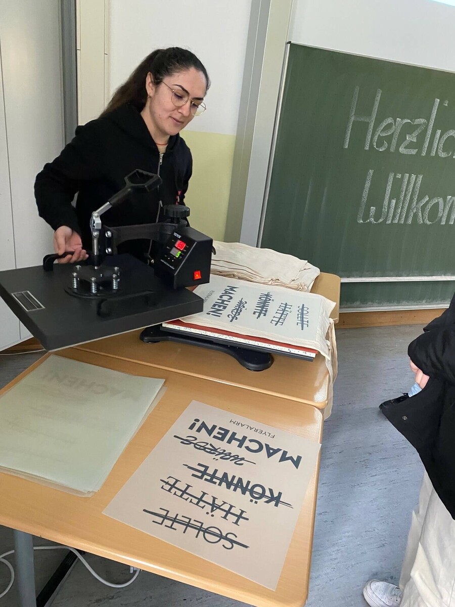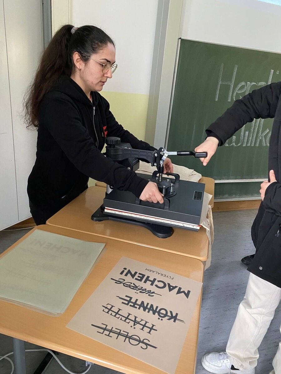 Wir hatten – wie auch auf dem BIT – unsere Druckpresse dabei und ließen Taschen selbst bedrucken. Diese kamen so gut an, dass nicht nur Schülerinnen und Schüler vorbei kamen sondern auch Lehrkräfte sowie Mitarbeiterinnen und Mitarbeiter anderer Unternehmen.