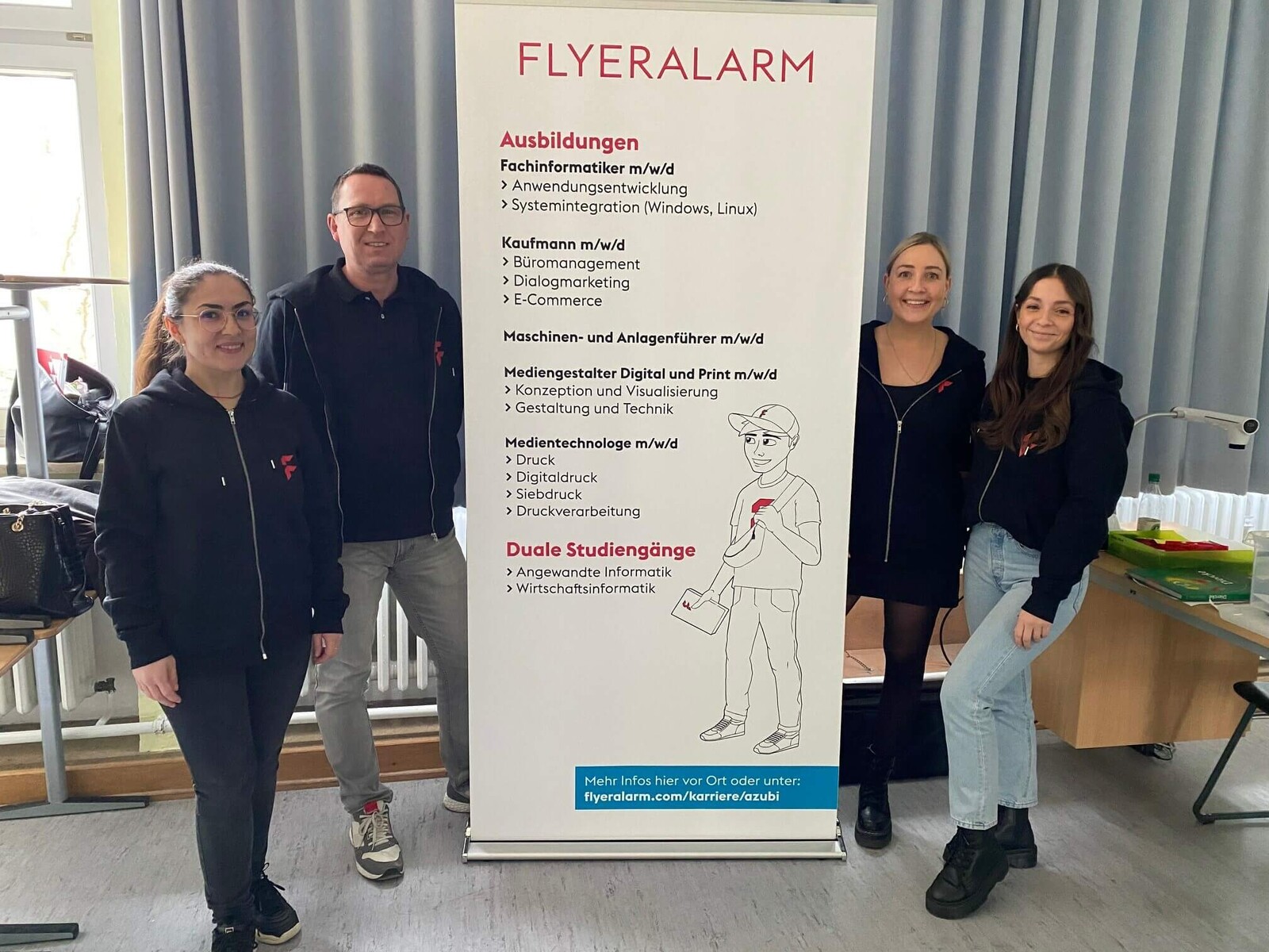 Auch hier durften wir nicht fehlen und waren mit drei Expertinnen und einem Experten rund um die Ausbildungsmöglichkeiten bei FLYERALARM vor Ort.