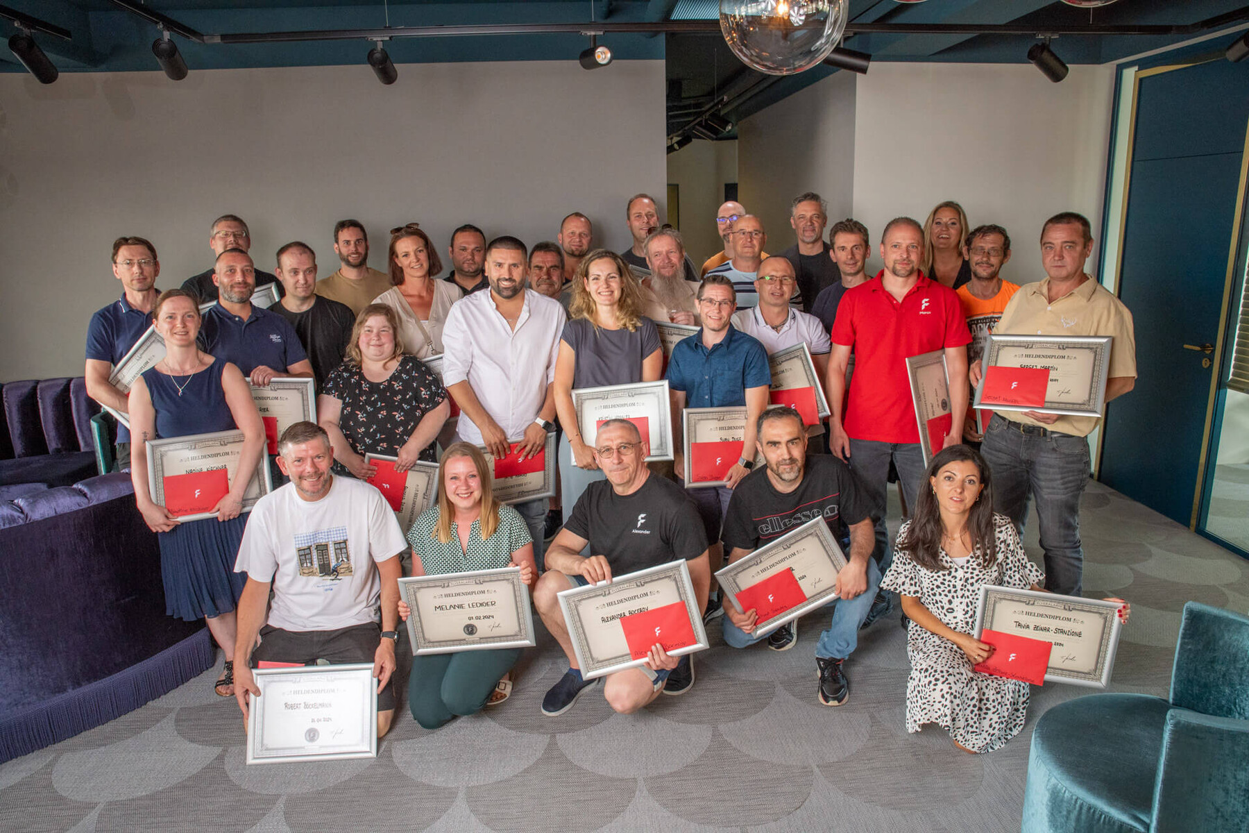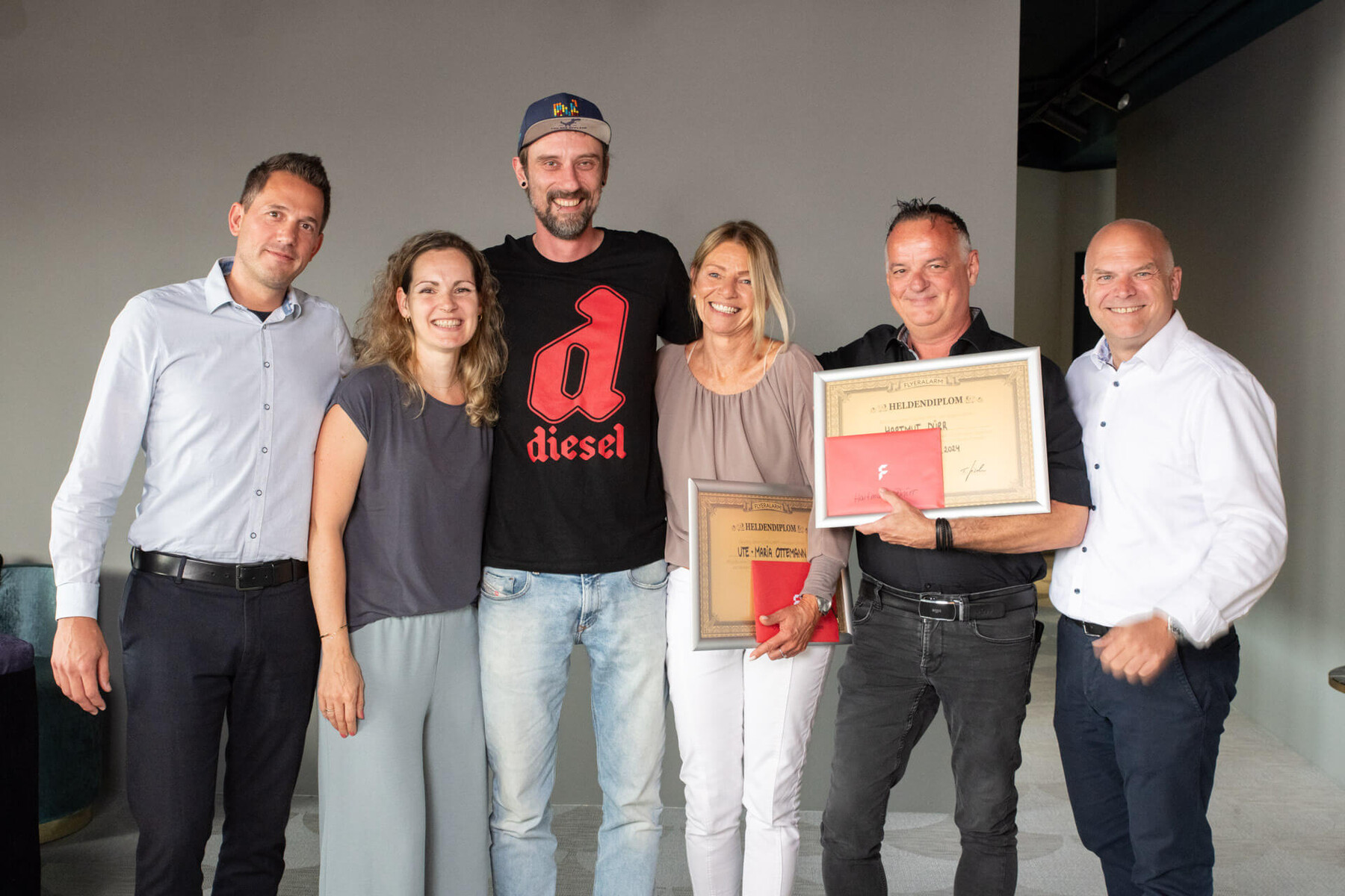 Ein herzliches Dankeschön geht an 46 Mitarbeitende für 10 Jahre, 39 Mitarbeitende für 15 Jahre sowie 5 Mitarbeitende für 20 Jahre Betriebszugehörigkeit. Wir sind wahnsinnig stolz, dass in Summe 90 Mitarbeitende bereits so lange ein Teil der FLYERALARM Familie sind.
